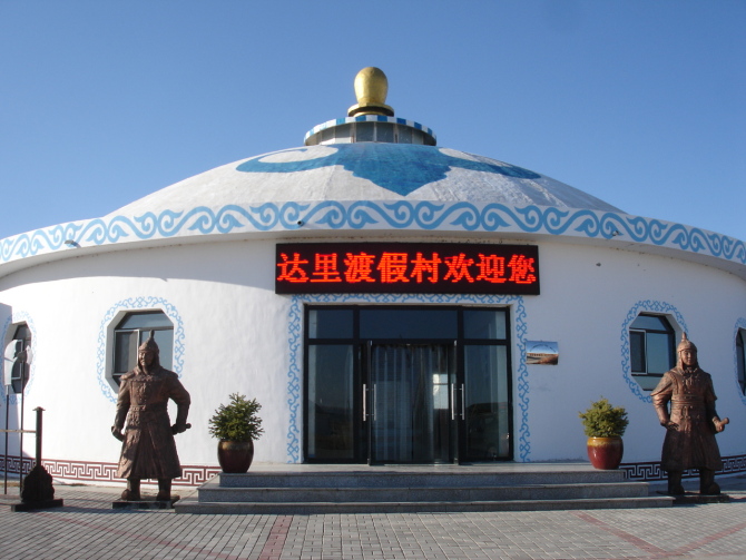 ? ? ? 達里度假村位于內蒙古赤峰市克什克騰旗西部90公里處,始建于1996年,現(xiàn)已投資1000余萬元,擁有員工80余人,是集餐飲 客房 娛樂 購物于一體的綜合性旅游度假村。 娛樂場所及購物中心介紹:達里度假村擁有自己的民族歌舞演出隊伍,讓您隨時能欣賞到具有民族特色的歌舞,還可以舉辦篝火晚會,小型那達慕,賽馬摔跤表演等娛樂活動。達里湖日出 夕陽以及達里湖風景,貢格爾草原風光攝影等自然風光給攝影愛好者提供了平臺,達里湖周圍古火山地貌,達里湖國家級自然保護野生動植物資源博物館能讓您隨時觀賞到保護區(qū)內的野生動植物,并成為各大中小院校宣傳環(huán)境保護的教育基地。 餐飲介紹:達里度假村餐飲部能容納350人同時就餐,有烤全羊,手把肉等多種民族食品,達里湖全魚宴,魚羊宴,貢格爾草原山野菜宴及各種家常菜。